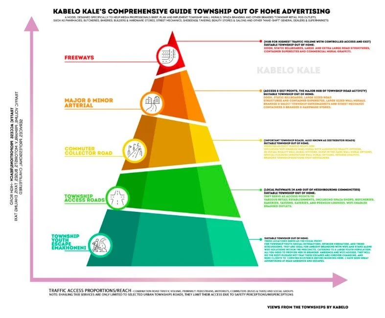 ntroducing Kabelo Kale’s Comprehensive Guide for Township Out-of-Home Advertising. A groundbreaking model, tailored to specifically help media planners, implementation planners, media directors, media managers, media strategists, out-of-home media professionals and marketers to brief media owners efficiently. Township out-of-home advertising is the most misunderstood communication platform which includes wall murals, branded spaza shops and other township retail point of sale.
