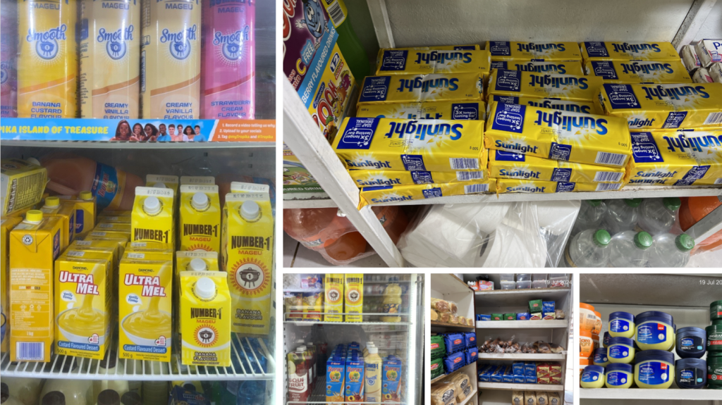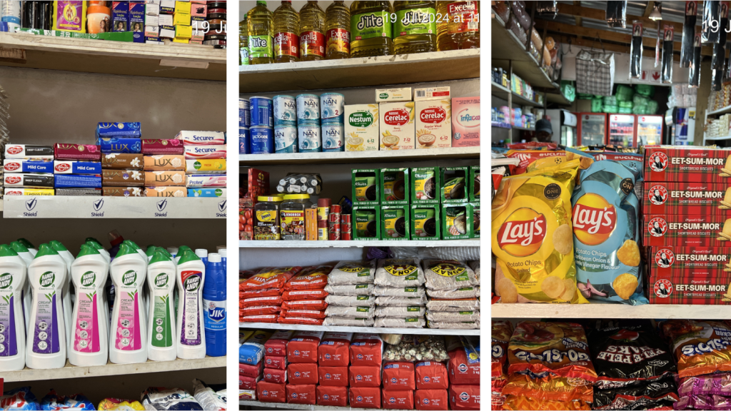 Despite locally produced uncharacterised and unknown products at these unknown and unseen corners of the South African informal market, we continue to witness a wide-listing of products and brands from the likes of The Coca-Cola Company Premier Foods PepsiCo FOODCORP LTD Pioneer Foods Clover S.A. Proprietary Limited Mondelēz International Unilever Nestlé Tiger Brands AVI Limited Danone including betting, airtime, satelite tv, electricity payments et all from the likes of DStv Eskom Holdings SOC Ltd Supabets Gaming Group (PTY) Ltd Betfred Betfred South Africa and many others.